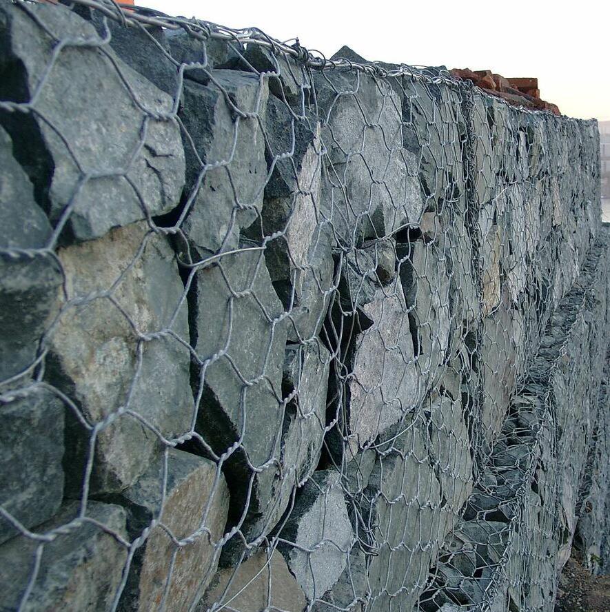 格賓籠格賓籠是由機(jī)械將雙線絞合編織成多絞狀、六邊形網(wǎng)目的網(wǎng)片,其雙線絞合部分的長度應(yīng)不小于5CM,以不破壞鋼絲的防護(hù)鍍層.河道治理格賓籠可根據(jù)工程設(shè)計要求組裝成箱籠,將裝入塊石等填充料后連接成一體,用做堤防、路基防護(hù)、水利建設(shè)等工程.